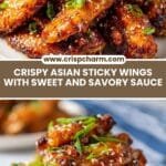 These Asian Sticky Wings are irresistibly flavorful with a perfect balance of sweet, savory, and aromatic spices. Marinated overnight in a blend of soy sauce, honey, brown sugar, and traditional Asian seasonings, then baked to golden perfection and coated in a luscious sticky glaze. Garnished with toasted sesame seeds and scallions, they make a perfect appetizer or main dish for an easy weeknight meal or party snack.