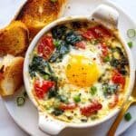 - Serve: Serve the baked feta eggs warm alongside crusty baguette, toast, or pita bread for dipping and enjoying the delicious runny egg yolk and melted feta sauce.