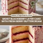 This Blackberry Layer Cake is a delightful dessert featuring moist vanilla cake layers filled and frosted with fresh blackberry filling and a creamy blackberry buttercream. Layered with juicy blackberries and sweet buttercream, this cake is perfect for celebrations or a special treat.