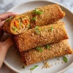 Crispy Rice Paper Spring Rolls are a delightful and crunchy appetizer featuring fresh julienned vegetables wrapped in delicate rice paper and pan-fried to golden perfection. Serve with tangy soy sauce and fresh lime juice for a refreshing, light snack or starter.