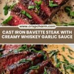 Cast Iron Bavette Steak with Whiskey Garlic Cream Sauce Recipe