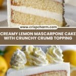 - Frost & Add Crumb Topping: Use the remaining lemon mascarpone cream to frost the top and sides of the assembled cake. Press the prepared crumb topping firmly onto the cake’s surface, covering the top and sides as desired.