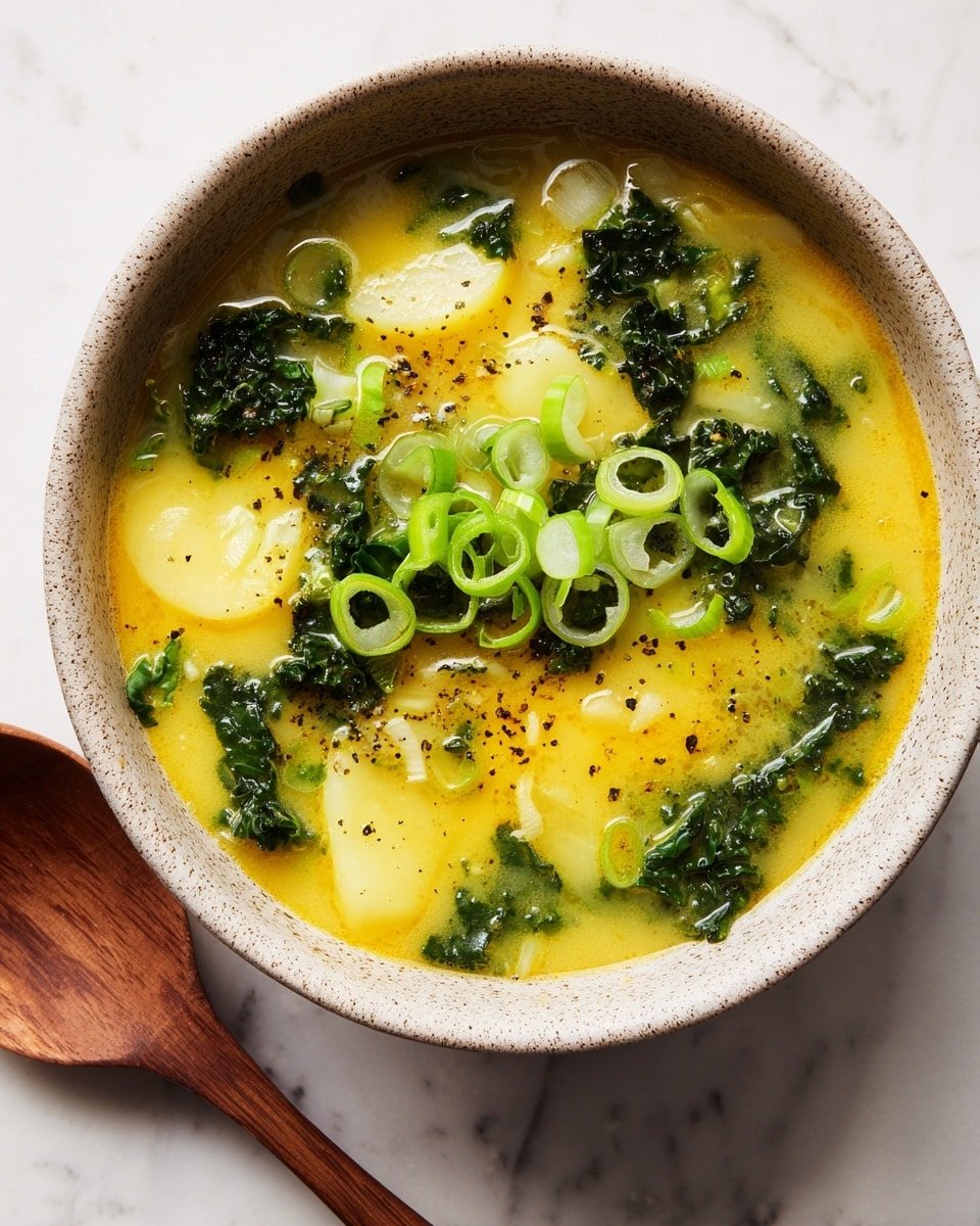 Colcannon Soup is a comforting, creamy Irish-inspired soup featuring classic colcannon ingredients like potatoes, cabbage, and kale blended into a smooth, hearty dish. This vegetarian soup combines sautéed leeks and onions with vegetable broth and milk for a rich texture, seasoned with nutmeg and garnished with fresh green onions. Perfect for a cozy meal, it’s easy to prepare on the stovetop and can be adapted for vegan diets by using plant-based milk and butter substitutes.