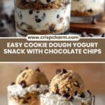 A delightful and creamy cookie dough-inspired treat made with Greek yogurt, nut butter, and mini chocolate chips. This no-bake, quick-to-make dessert combines the flavor of cookie dough with the health benefits of yogurt, perfect for a guilt-free snack or dessert.