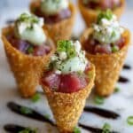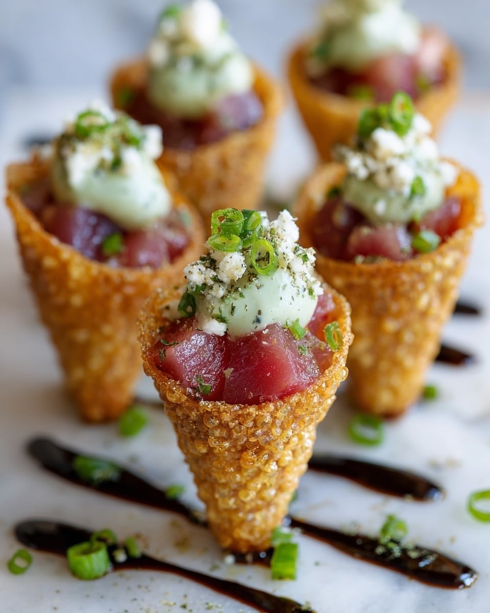 I love how these cones bring together the lush creaminess of avocado, the fresh bite of sushi-grade tuna, and that perfect sticky sushi rice — all nestled inside a toasty, crisp cone. It’s comfort food with a refined edge that’s surprisingly approachable for home cooks.