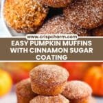 These Donut Pumpkin Muffins are a delicious fall treat featuring moist pumpkin-spiced batter baked to perfection and coated with a cinnamon sugar glaze. Soft on the inside with a slightly crisp cinnamon sugar outside, they capture the comforting flavors of pumpkin and warm spices, perfect for breakfast or a cozy snack.