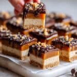Frozen Banana Snickers are a delightful and easy-to-make frozen treat that combines ripe banana slices topped with creamy peanut butter, crunchy chopped peanuts, and drizzled with rich dark chocolate. Finished with a sprinkle of sea salt, these little snacks capture the classic Snickers flavor in a healthier, frozen bite-sized form.