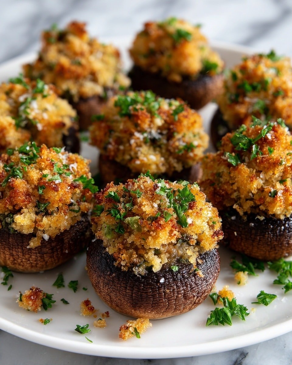 1. Bake at 375°F (190°C) for 15–20 minutes. The mushrooms should be tender but still hold shape, and the topping will develop a toasty, golden crust.
