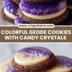 Geode Cookies are delightful sugar cookies embedded with colorful candy crystals that create a stunning, gem-like appearance once baked. These cookies combine a soft, buttery texture with the sparkle of rock candy, making them perfect for festive occasions or as a unique treat for any cookie lover.