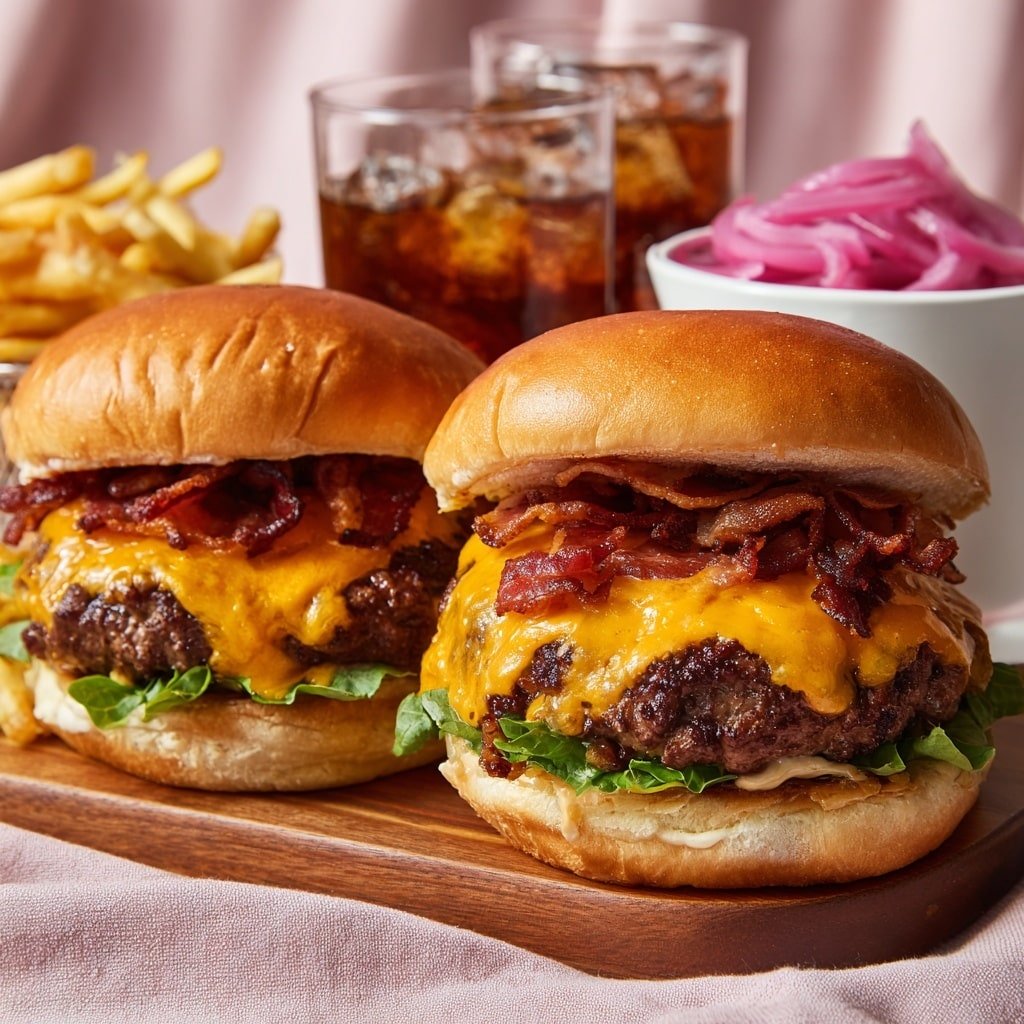 Whenever I think of a weekend well-spent, a juicy, toasty burger sizzling on the grill comes immediately to mind. There’s something so comforting about biting into a perfectly seared patty layered with crisp bacon and tangy pickled vegetables—each element playing off one another like a delicious conversation on your palate.