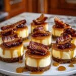 Delightfully rich and creamy, these Indulgent Spicy Maple Bacon Cheesecake Bites combine the smoky crunch of crispy bacon with a smooth cream cheese filling sweetened with maple syrup and a kick of cayenne pepper. Set atop a buttery graham cracker crust and finished with a luscious caramel drizzle, they offer a perfect balance of spicy, sweet, and savory flavors in a bite-sized treat.
