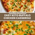 This Keto Buffalo Chicken Casserole is a creamy, spicy, and cheesy comfort dish perfect for low-carb and keto diets. It combines shredded chicken with buffalo sauce and a blend of rich cheeses, baked to bubbly perfection and garnished with fresh green onions for a deliciously satisfying meal.