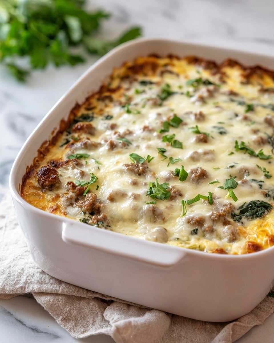 I love how the spicy, golden-browned sausage blends effortlessly with wilted spinach to bring a fresh earthiness, while the silky mix of cream, eggs, and cheeses wraps everything in a luscious, rich embrace. You’ll find this recipe is both hearty and light, packed with flavor but kind to your keto goals.