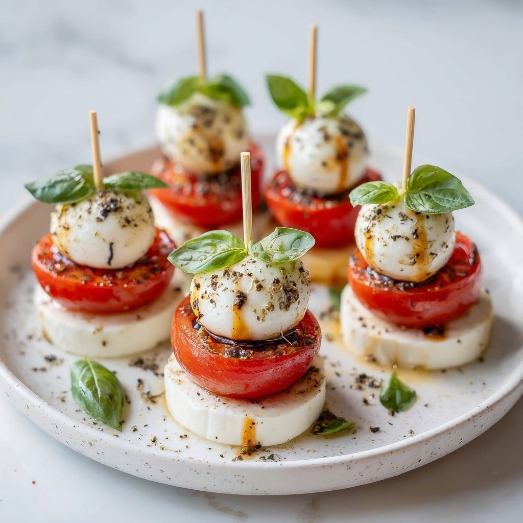 - Serve immediately: Present the Mini Caprese Salad Bites fresh as a delicious and visually appealing appetizer perfect for any occasion.