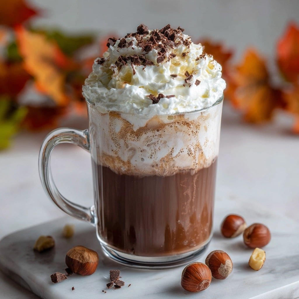 - Pour and garnish: Ladle the hot chocolate into waiting mugs. Crown each with a swirl of whipped cream and sprinkle hazelnut pieces on top for that satisfying crunch and visual charm.