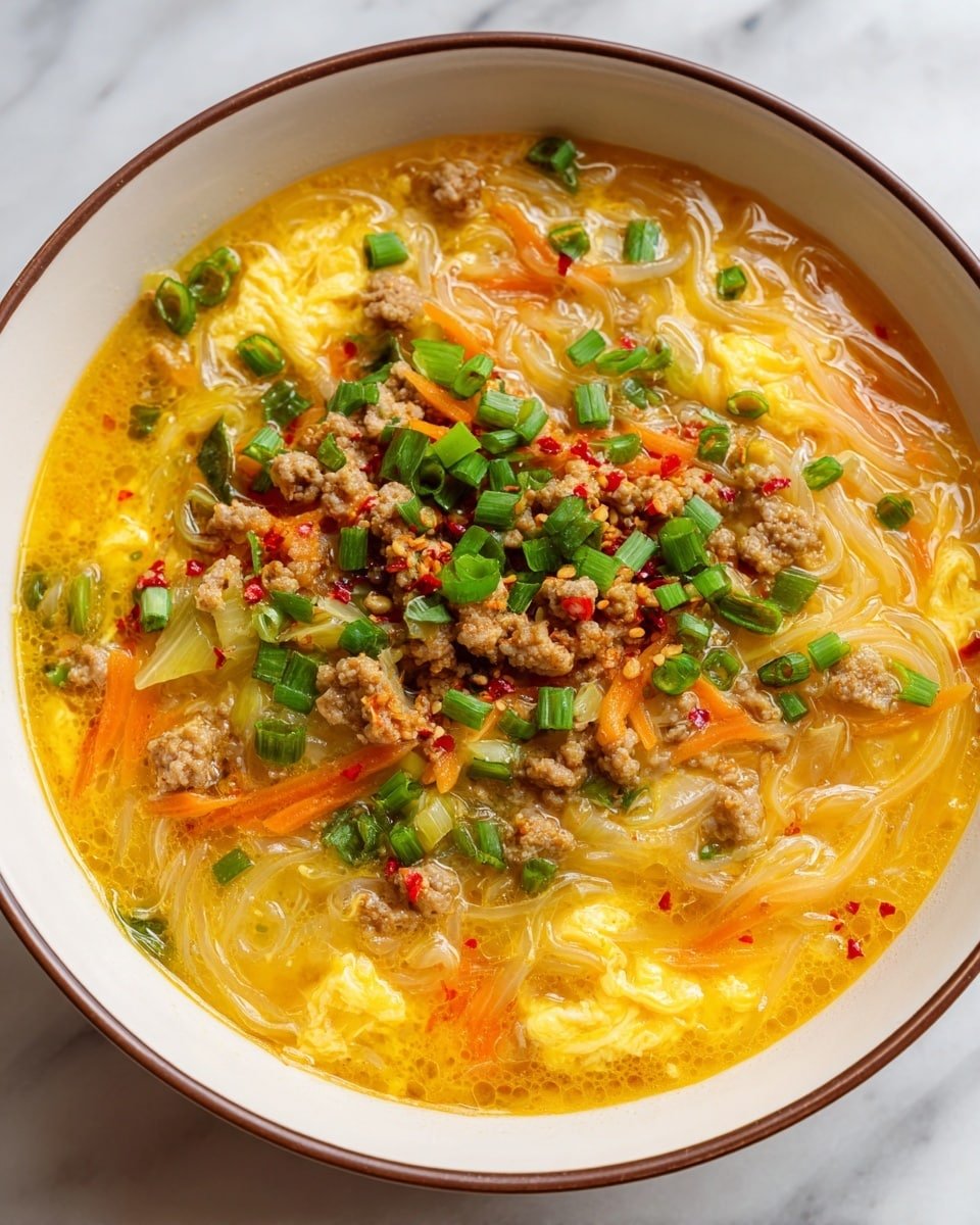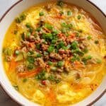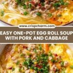 This One-Pot Egg Roll Soup combines the savory flavors of classic egg roll fillings into a comforting and easy-to-make soup. Ground pork, fresh ginger, and garlic create a rich broth that is enhanced by crisp cabbage, shredded carrots, and green onions. Finished with optional egg ribbons for extra silkiness and customizable heat, this soup delivers all the taste of an egg roll in a warm, nourishing bowl.