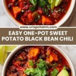This One-Pot Sweet Potato and Black Bean Chili is a flavorful and hearty vegetarian meal perfect for cozy dinners. Packed with nutritious sweet potatoes, protein-rich black beans, and aromatic spices, this chili is easy to prepare with simple ingredients all cooked together in one pot, making cleanup a breeze. Garnish with fresh cilantro and optional avocado and lime wedges for added freshness and creaminess.