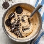 For the creamiest results, always start with room temperature cream cheese and butter — cold ingredients can cause your frosting to curdle or be lumpy. If your frosting feels too stiff, add a teaspoon of milk or cream to loosen it slightly. When mixing in the Oreos, fold gently to keep those crave-worthy chunks intact. And if you want a smoother finish, sift the powdered sugar before mixing to avoid any gritty bits.