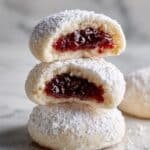 These Raspberry Filled Almond Snowball Cookies are delicately buttery and nutty, filled with a sweet and tangy raspberry jam center. Perfectly crumbly and dusted with powder sugar, they make a delightful treat for festive occasions or everyday sweet moments. Made with almond flour and real butter, these cookies offer a rich texture with a fruity surprise inside.