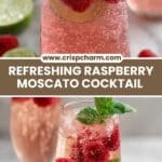 - Garnish and serve: Garnish each drink with a sprig of mint and a few fresh raspberries. Serve immediately and enjoy the refreshing Raspberry Moscato Cocktail.