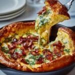 This Savory Cheddar & Bacon Dutch Baby is a perfectly puffed, golden baked treat, combining sharp cheddar cheese and crispy bacon for a rich, flavorful breakfast or brunch option. Enhanced with fresh herbs and an optional drizzle of honey, it delivers a delightful balance of savory and sweet in every bite.