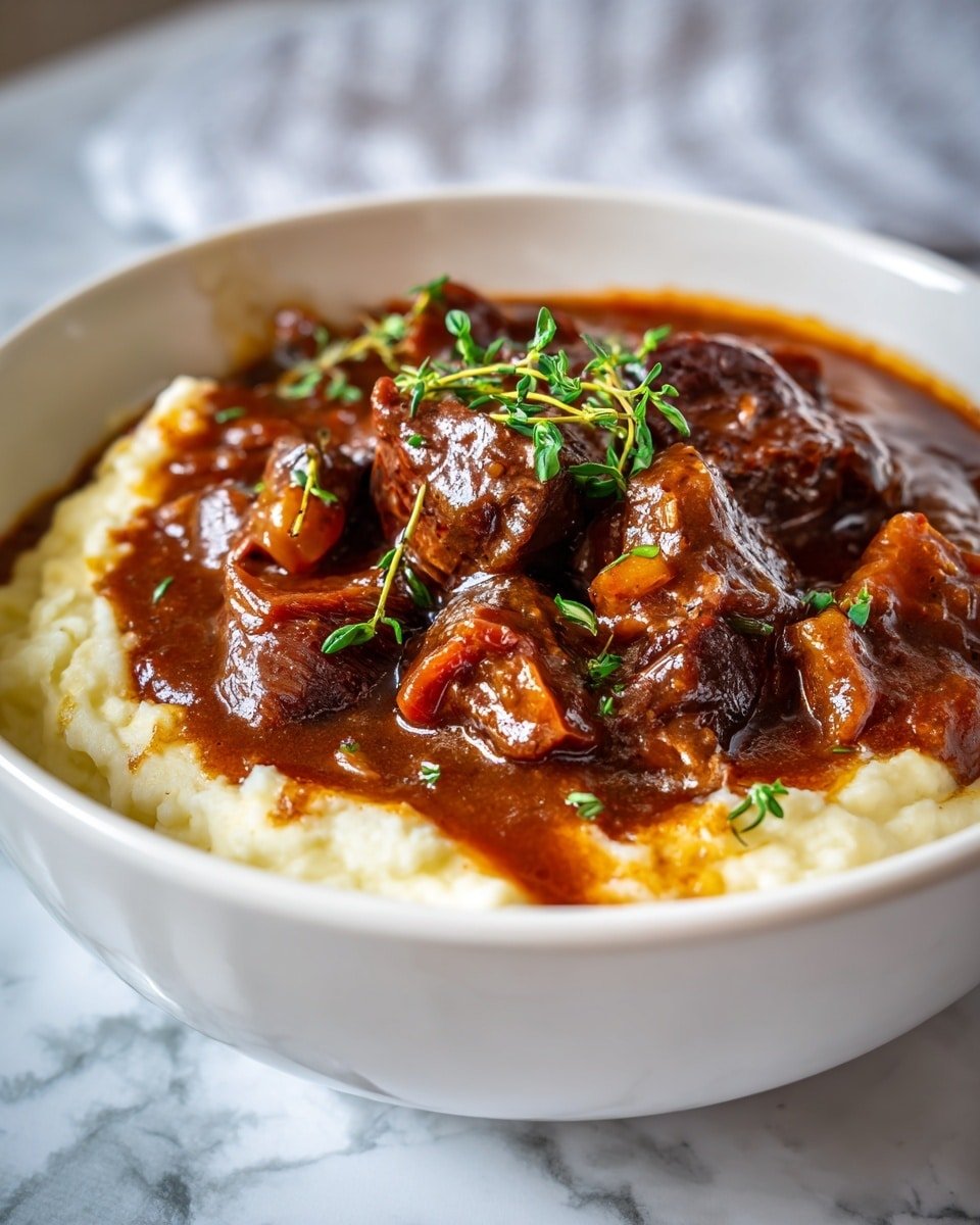 Slow Cooker Beef Manhattan Recipe - Recipe Image — Slow Cooker Beef Manhattan, beef Manhattan recipe, easy beef stew, comforting slow cooker meals, homemade beef dinner