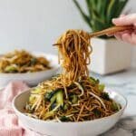 - Serve immediately as the noodles can become soggy when left to sit.