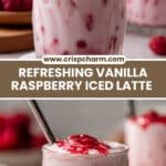Enjoy a refreshing Vanilla Raspberry Iced Latte, a delightful blend of rich espresso, fruity raspberry puree, and smooth vanilla sweetness, perfect for a cool and tasty treat any time of day.